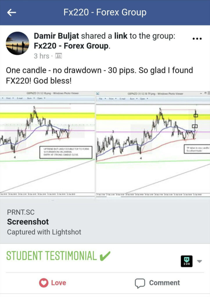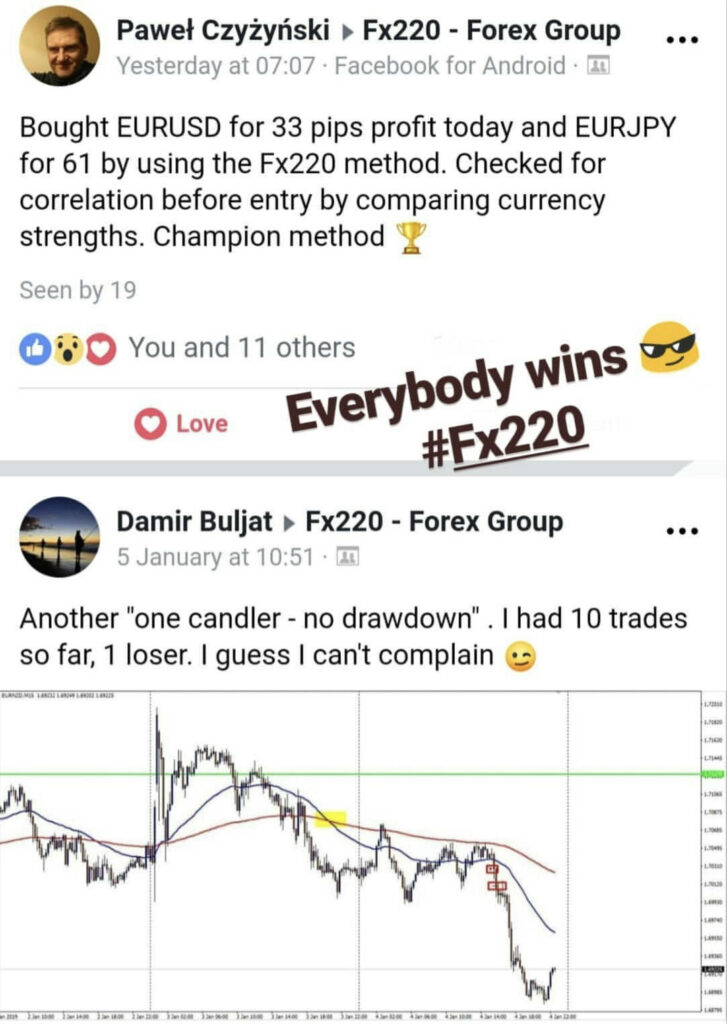 You’ll get Lifetime mentoring and support + Lifetime access to the video course and learning material + Lifetime access to our Private Facebook group for trade discussions and opportunities. And join thousands of fellow successful traders that are trading the Fx220 method!
